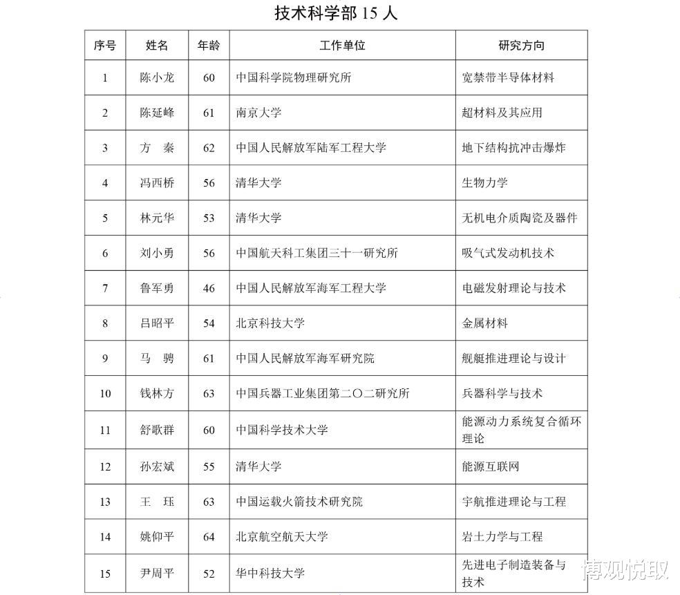 正如增选指南中强调的“破除‘四唯’、打破论资排辈”,这15位院士中,有46岁的青年才俊,有64岁的学术老将,有来自高校的学者,有扎根军工院所的工程师。他们的共同特征,是“长期奋战在科研一线”“为国家重大需求作出突出贡献”。