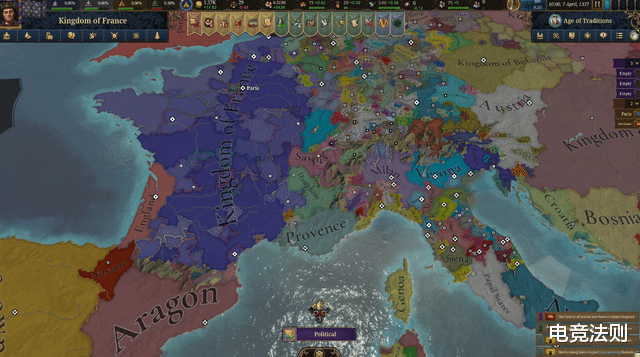 初见《欧陆风云5》,最震撼的是“量”与“质”的双重跃升。游戏起始年回溯至1337年英法百年战争爆发之际,地图精度与细节呈指数级增长:可探索区域从EU4的2500个飙升至超3万个,国家、宗教、文化数量均翻数倍。更关键的是,地图投影技术更精准,气候、地形、植被的差异化呈现,让“地图涂色”爱好者直呼过瘾。