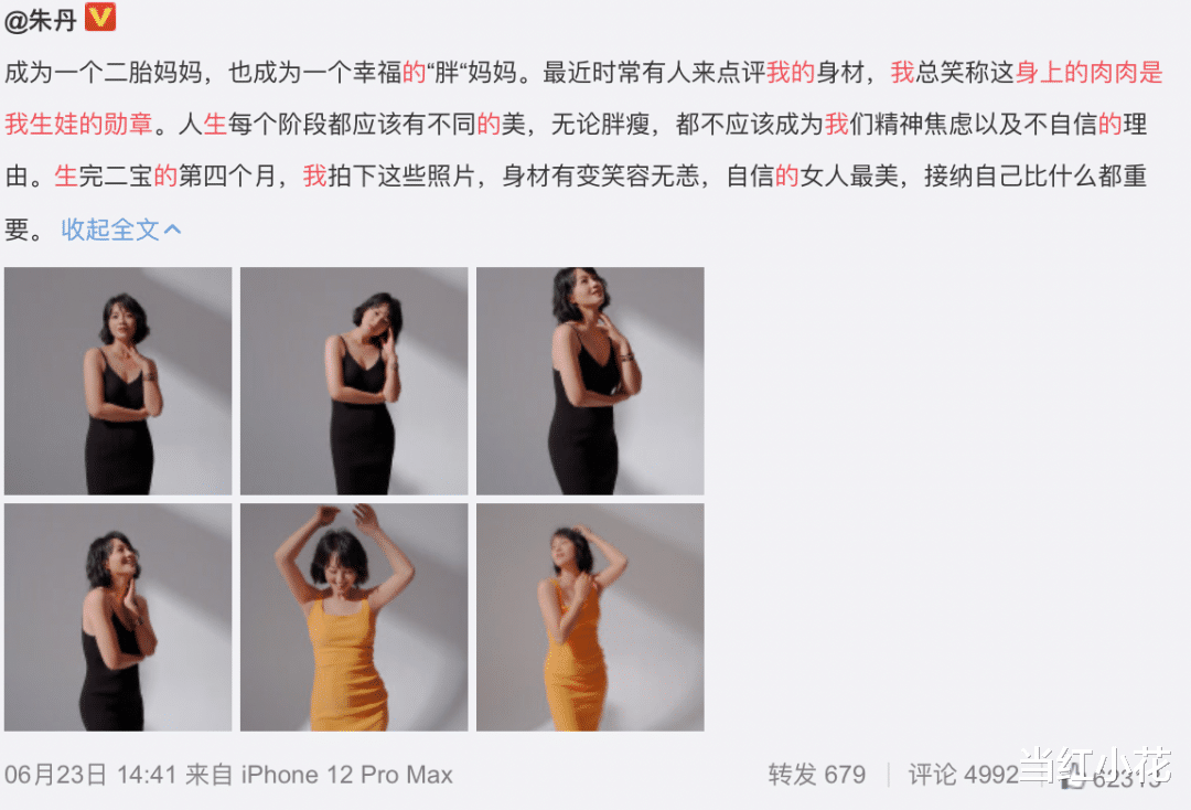 其实朱丹或许并不在意网友对于她身材的评判,去年她刚刚卸货二胎,就回应过身材走样的问题,说“身上的肉肉是我生娃的勋章”,