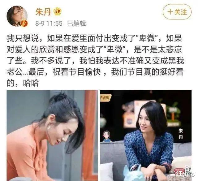 不过婚姻嘛如鱼饮水冷暖自知,朱丹大概也觉得现在的生活幸福着呢,别人吐槽周一围油腻又大男子主义,朱丹偏偏就爱他的大男子主义,这不就王八看绿豆,看对眼了不是?