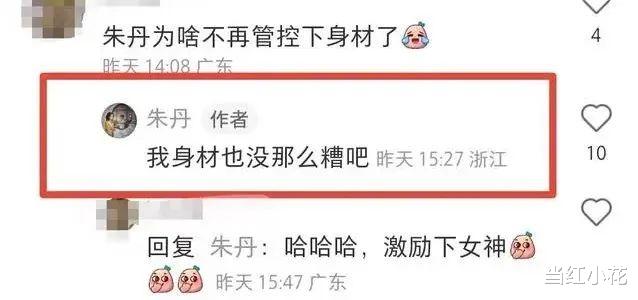 不过部分网友比较苛责,在评论区质问她为啥不注重下身材管理,被朱丹回怼,“我身材也没那么糟吧”。