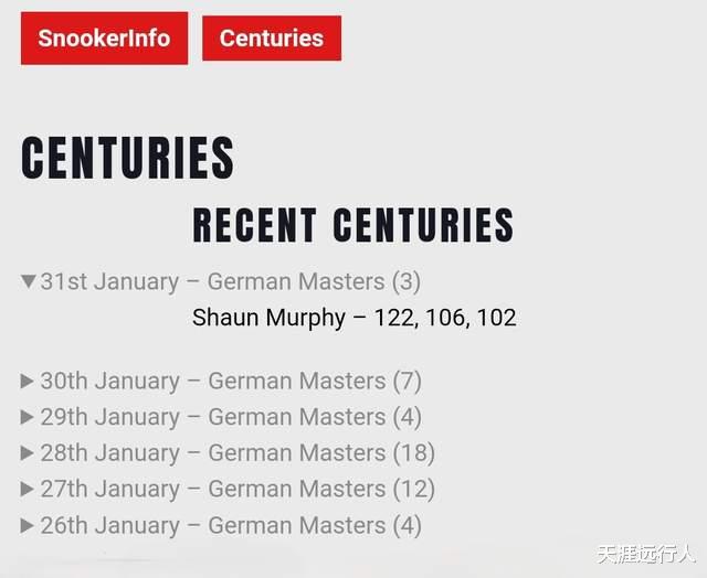 这个比赛日,肖恩·墨菲一人轰出三杆单杆破百,赛会破百杆数来到106杆。