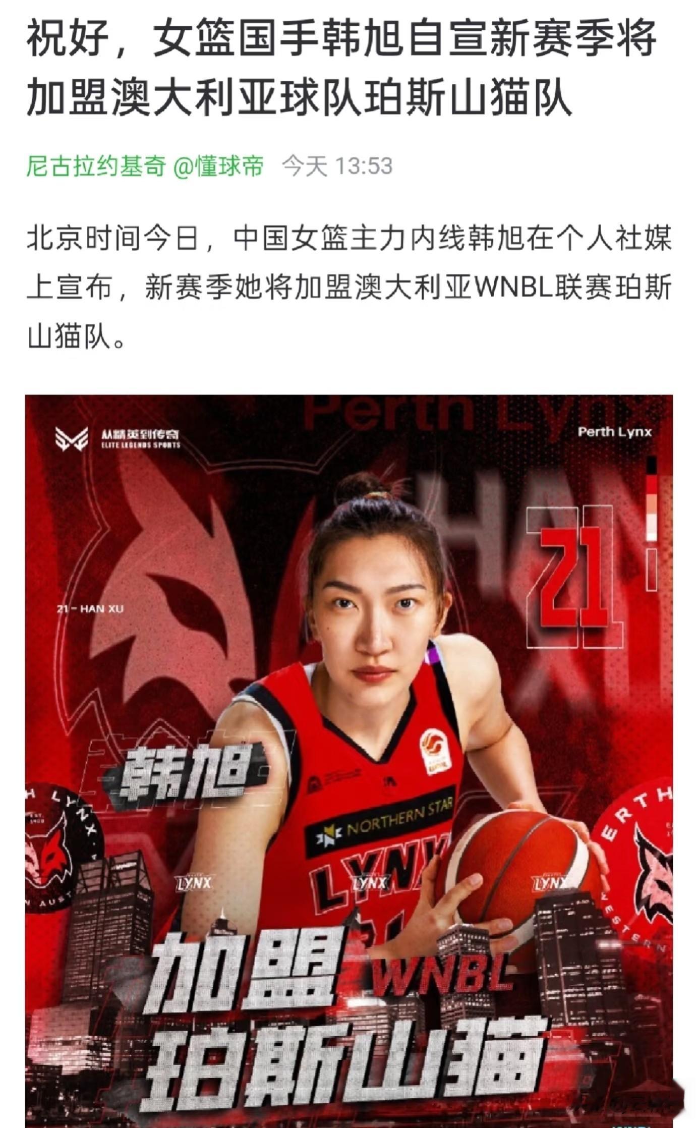 随着韩旭官宣新赛季加盟澳大利亚WNBL联赛珀斯山猫队,小宝李月汝征战美国Unrivaled联赛,这样女篮现役两大顶级中锋都出现在了海外联赛的赛场。新赛季WCBA联赛的格局也必将随着韩旭的离去产生巨大的变化。