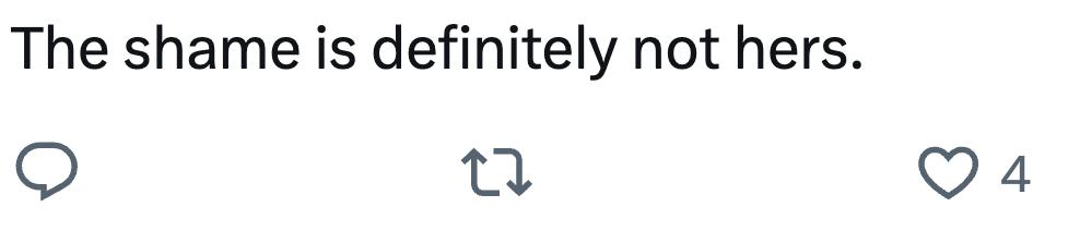 “深受震撼。这勇敢的女人确保耻辱变成了另一方的。”