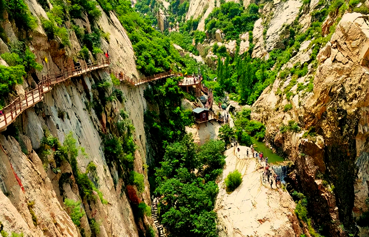 玻璃栈道·云端漫步:走“200米高空栈道”(距谷底150米),体验“悬空观景”,看“中条山层峦叠嶂”;