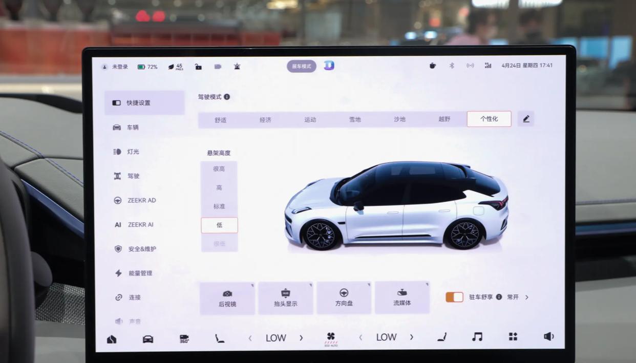 如果说极氪001在外观方面的表现让人眼前一亮,那么在智能化与科技配置层面上,它的表现则让人刮目相看。我们不得不提到,为了与同行业竞争者抗衡,极氪001在智能座舱的升级上也是颇为用心。不同车型的智能配置差异可谓明显,入门版行车安全配置相对简单,而高配版则搭载了更为先进的驾驶辅助系统。正如“你花钱的地方,自然会有回报”这句话,越高的配置自然意味着越高的价格,消费者在选择时可以根据个人需求进行布局。