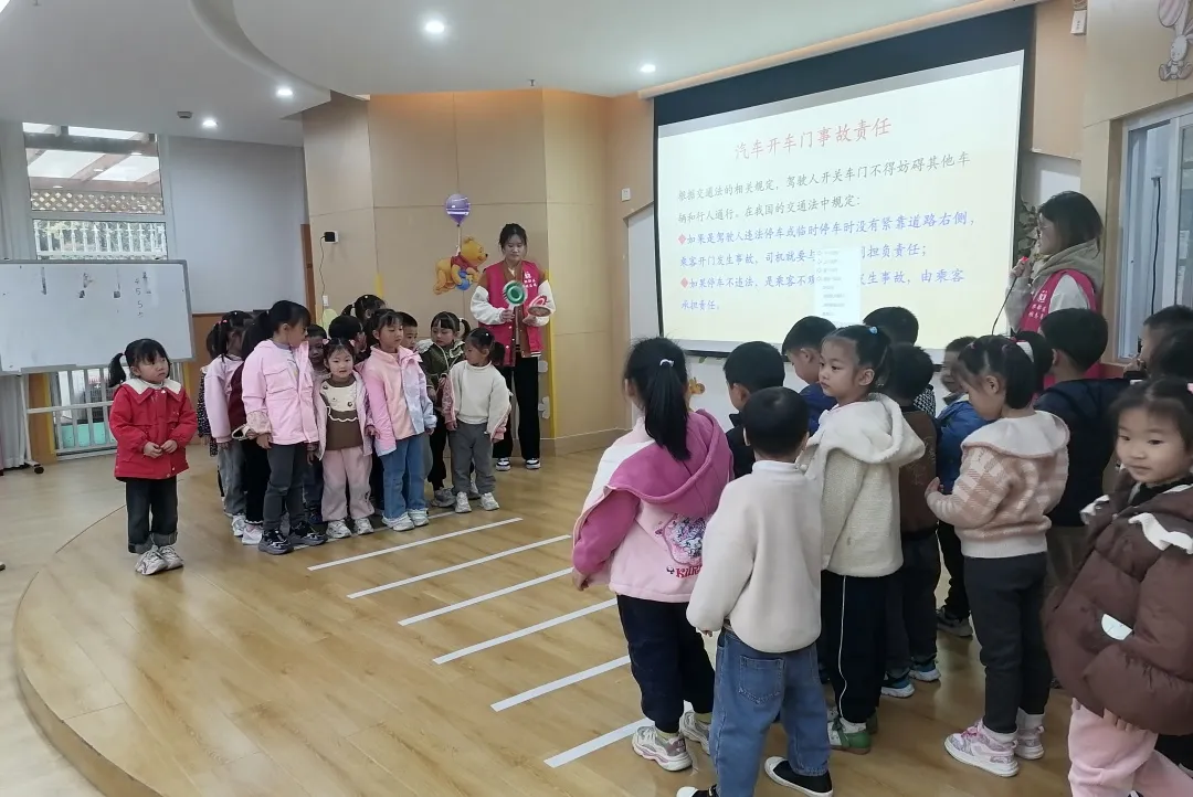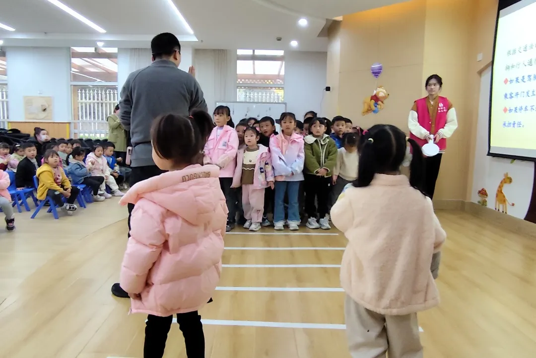 紧接着,活动进入了专家老师的交通安全知识讲座环节。老师巧妙地运用动画视频的形式,将交通规则、交通信号以及行人安全等内容,以直观方式呈现在小朋友们面前。这些生动有趣的动画不仅吸引了小朋友们的注意力,还更加深刻地理解到遵守交通规则的重要性,以及如何在日常生活中确保自身的交通安全。在这充满教育意义的环节中,小朋友们不仅收获了知识,更在心中种下了安全意识的幼苗。