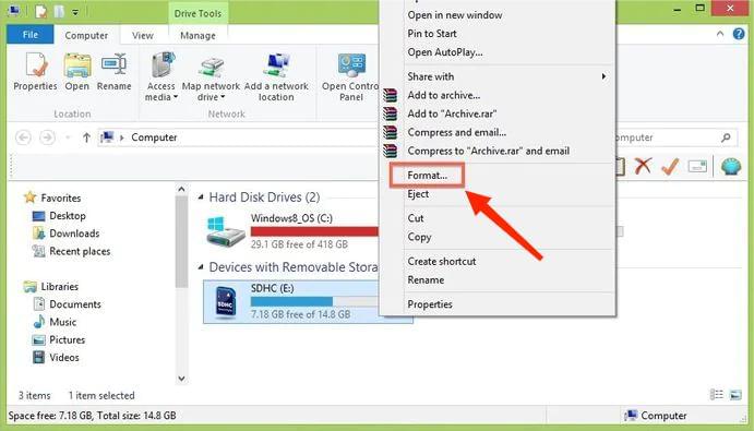步骤 1. 在文件资源管理器中右键单击 SD 卡驱动器。