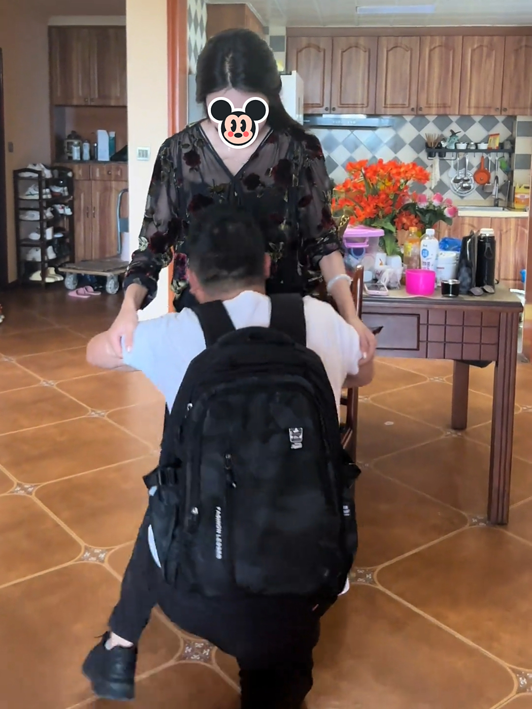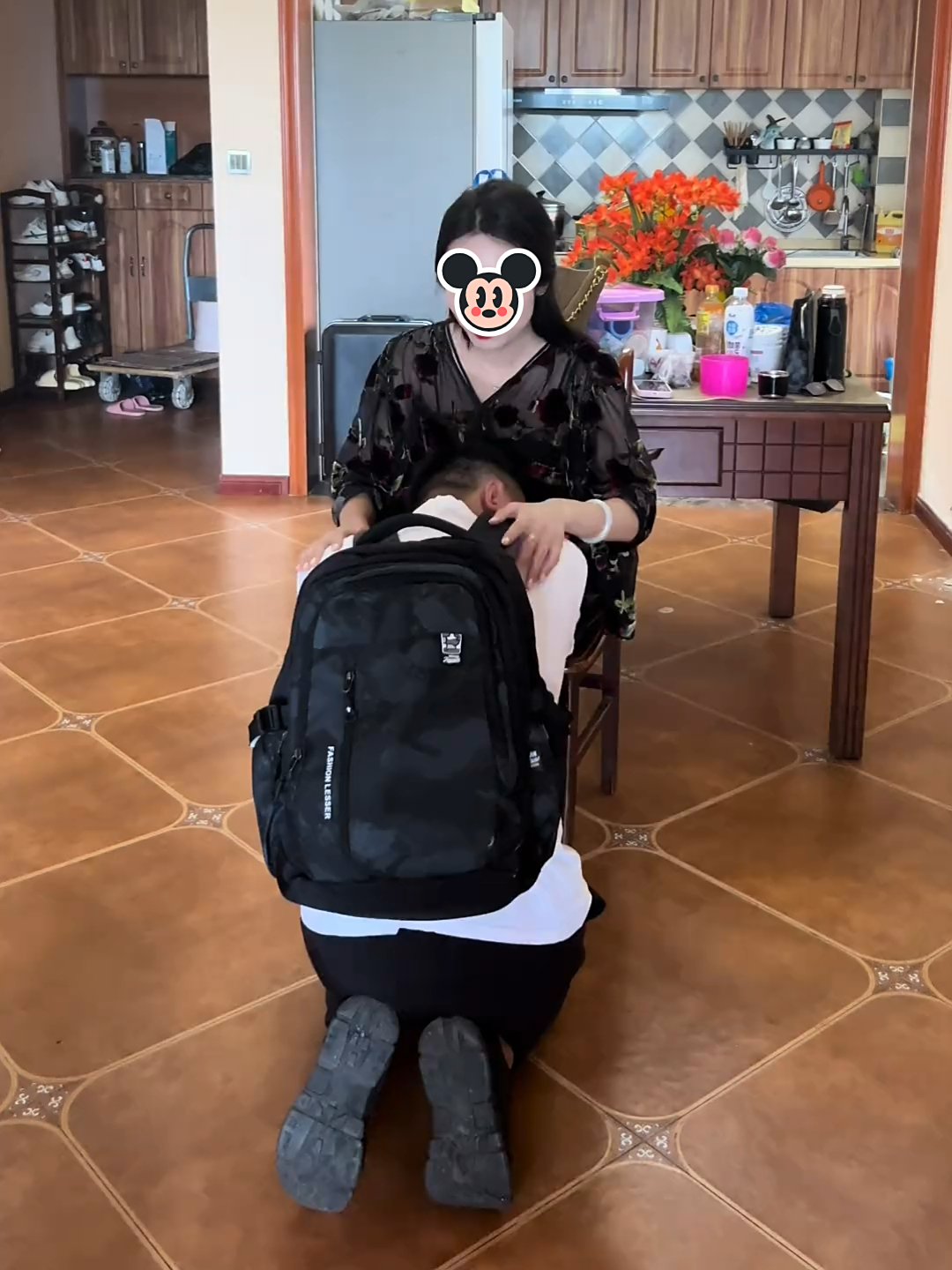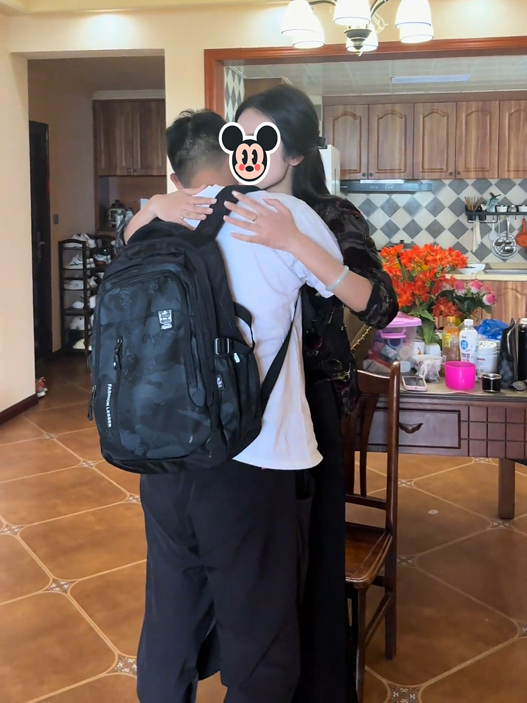 男孩这才缓缓起身,随后,女子转身走到一旁的桌子前,然后回到男孩身边,把钱放进他的吧背包里,这是她为男孩准备的新学期生活费。