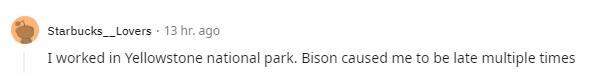 我在黄石国家公园工作,我也总被野牛害得迟到。