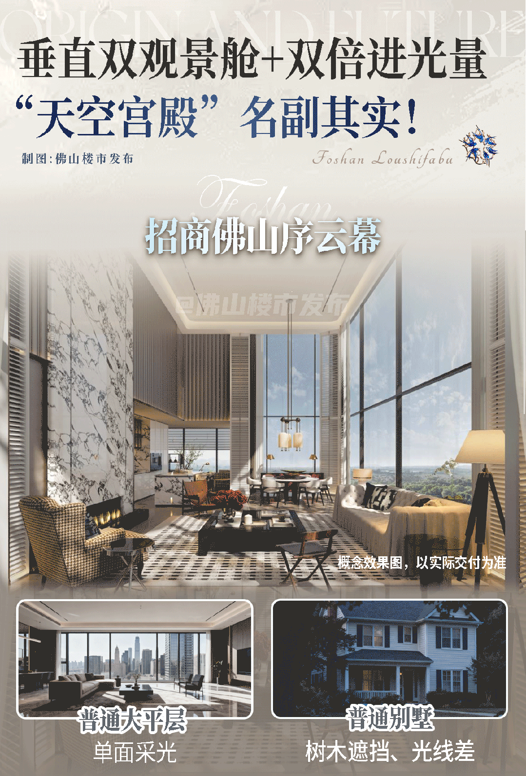 |佛山城市景观图|项目供图总的来说,招商佛山序的“天空宫殿”,集合了地段稀缺性、产品颠覆性和生活革命性于一体,有望成为佛山顶豪市场的里程碑之作。有追求的高端买家们,终于等来了这样一个无可挑剔的产品。作为大平层和别墅迭代的终极产品形态,它雄踞在城市核心地段上空,成为2025年佛山最高的豪宅、也创造出一种全新的生活方式。最后,楼市君想说,这样颠覆性的产品可遇不可求,想体验下一代豪宅生活的朋友可以行动起来了~