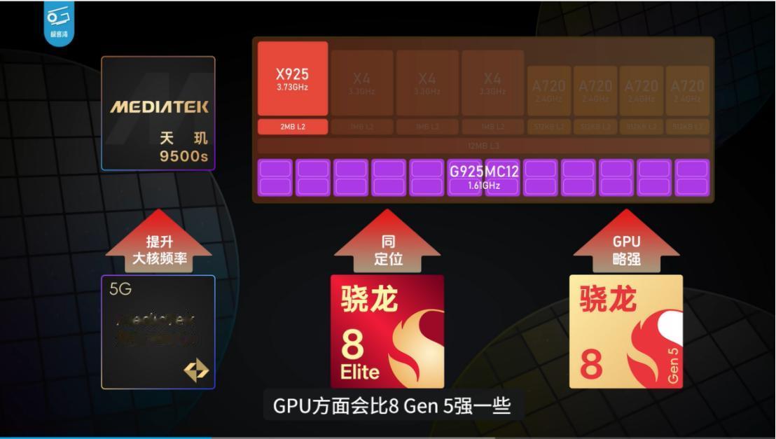 讲道理,按照当前旗舰芯片上的“量子纠缠”状态,很难讲谁一定压对方一头。那在旗舰 n-1 上,看的也就是谁给料更足了,谁想到,今年发哥突然发了狠,掏出来的天玑9500s居然这么有料,冲着去年的8E直接开打,对8G5更是压一头,这样一卡位,加上 8500参团,发哥把这个档次的玩法又盘活了。
