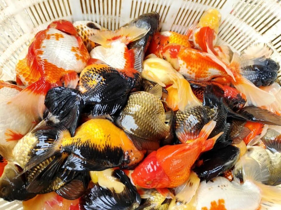 上午九点,随着渔网缓缓收起,橙红、雪白、墨黑等各色泰狮金鱼簇拥而出,灵动有趣。