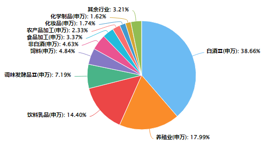 不过,在其成分里有40%的白酒,然后是18%的养殖业(猪肉)和14%的饮料乳品。行业相对分散,但白酒依然是重仓。