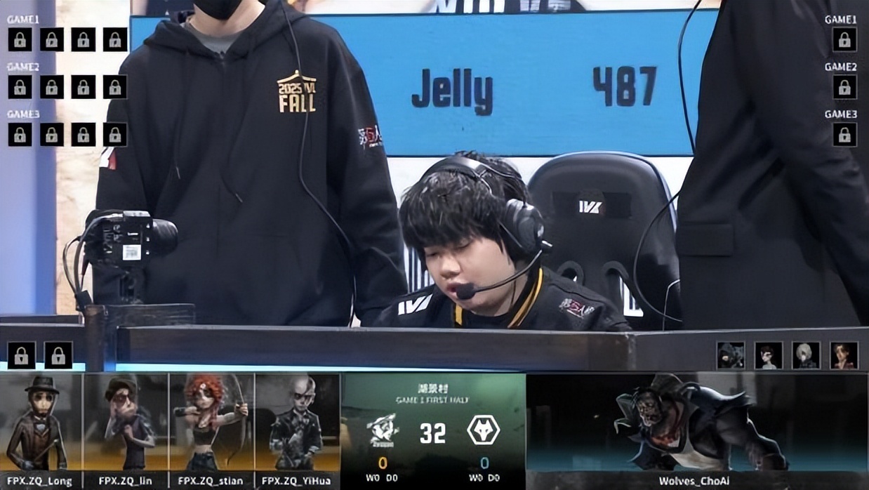 FPX.ZQ的求生者选择了魔术师、幸运儿、弓箭手、“逃脱大师”;成都Wolves的监管者ChoAi选择了“跛脚羊”。(BAN先知、古董商、守墓人、大副)