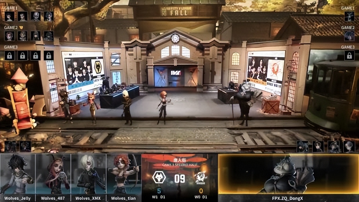 FPX.ZQ的求生者选择了飞行家、古董商、佣兵、教授(BAN“喧嚣”);成都Wolves的监管者ChoAi选择了歌剧演员。(BAN先知、大副、火灾调查员、空军)