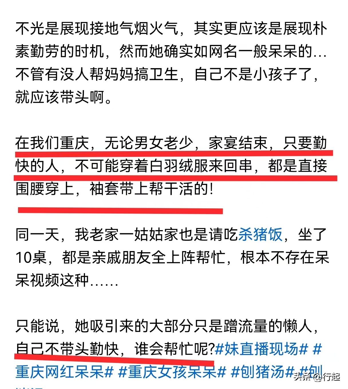 网友的评论开始出现分歧。有人心疼她,理解一个小姑娘面对失控场面的无助。但也出现了另一种声音:在他们重庆,办家宴无论男女老少,都会直接系上围裙、戴上袖套帮忙干活,主人更要带头勤快。