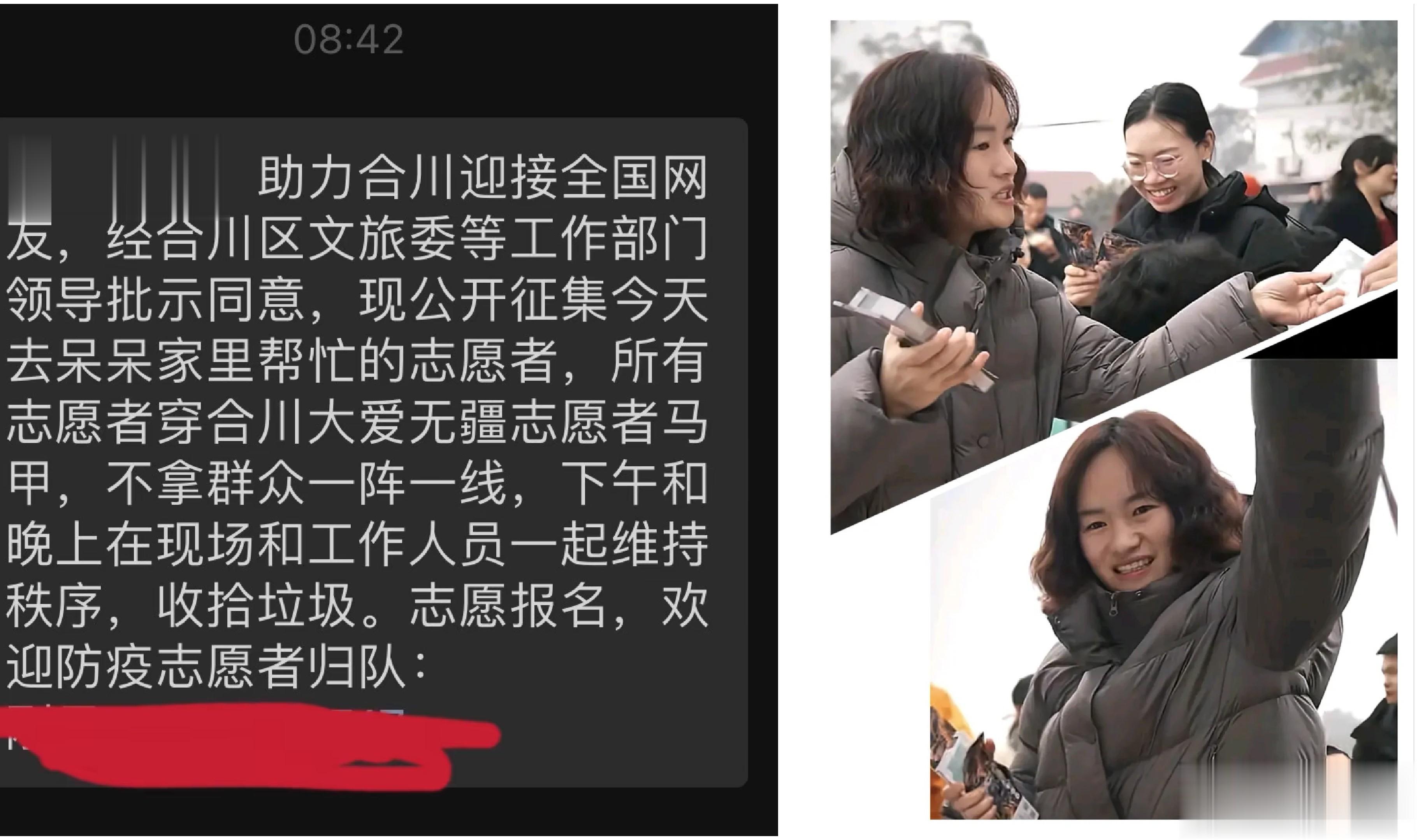不过,让人欣喜的是,合川文旅已经出手了,很多当地的都收到了信息,希望有更多志愿者加入,去带呆呆家帮忙,维持秩序和收拾垃圾。这样,呆呆妹一家人应该能松口气了。