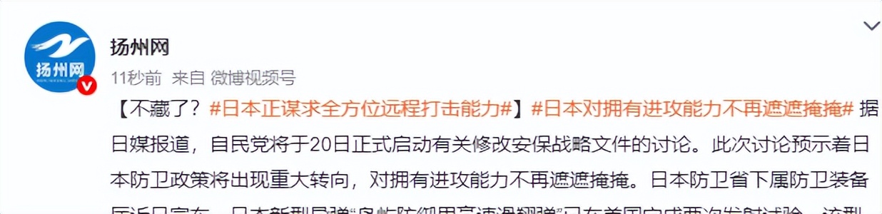扬州网【不藏了?#日本正谋求全方位远程打击能力#】#日本对拥有进攻能力不再遮遮掩掩#