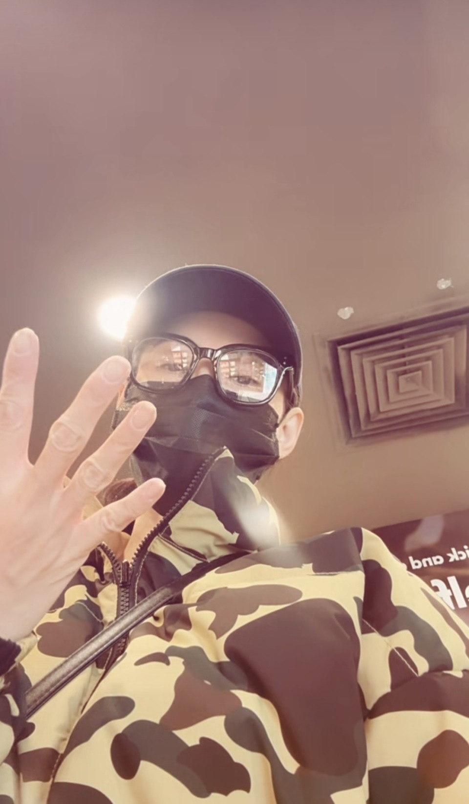 视频里的她全副武装,迷彩羽绒服配鸭舌帽,口罩眼镜齐上阵,把自己裹得严严实实,完全就是家庭主妇的既视感。