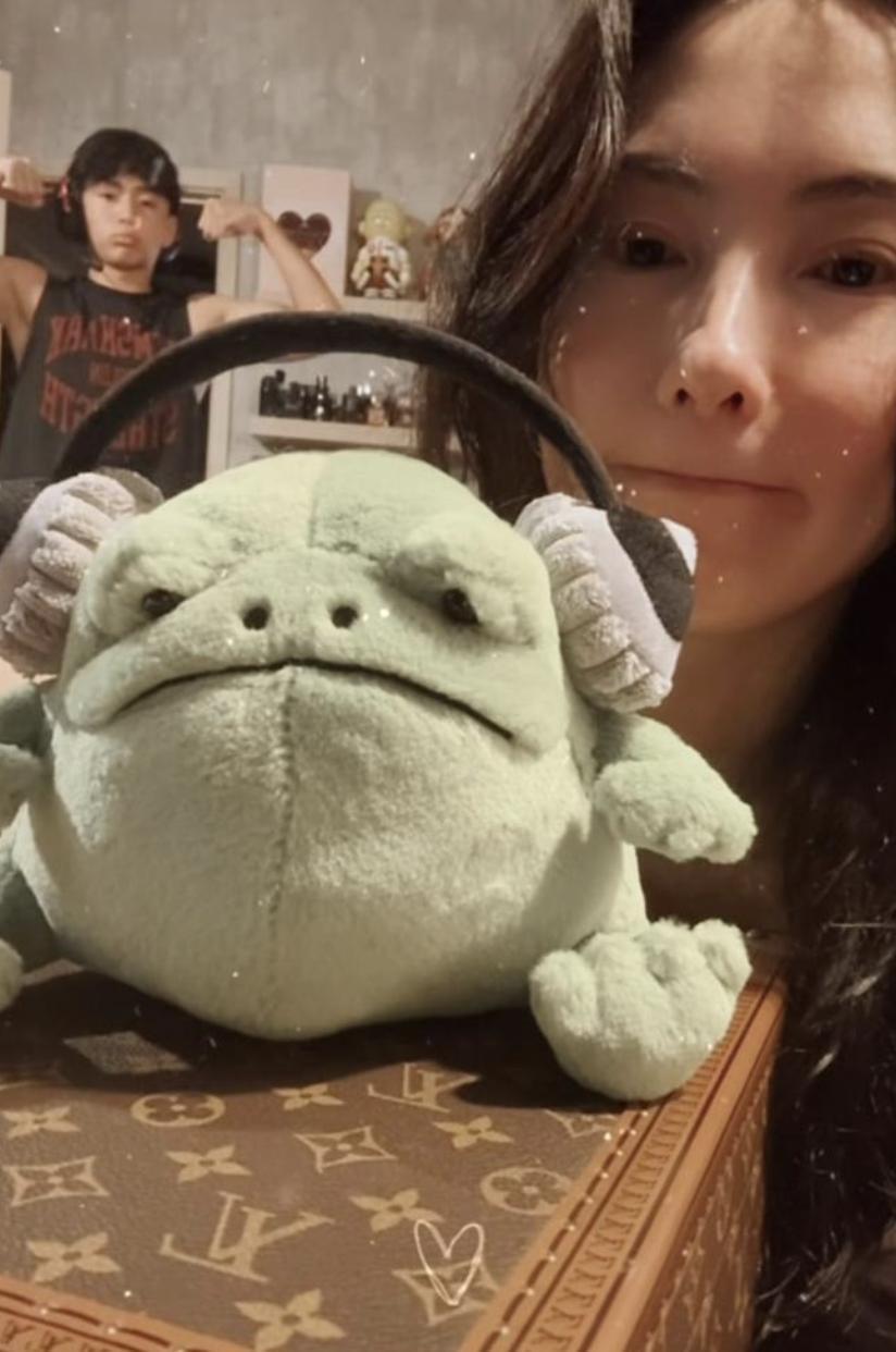 1月3日,她带着7岁的小儿子Marcus去香港迪士尼乐园玩,晒出的视频里,Marcus趴在她肩膀上,虽然脸被挡住了,但能看出他已经长到妈妈胸口了。
