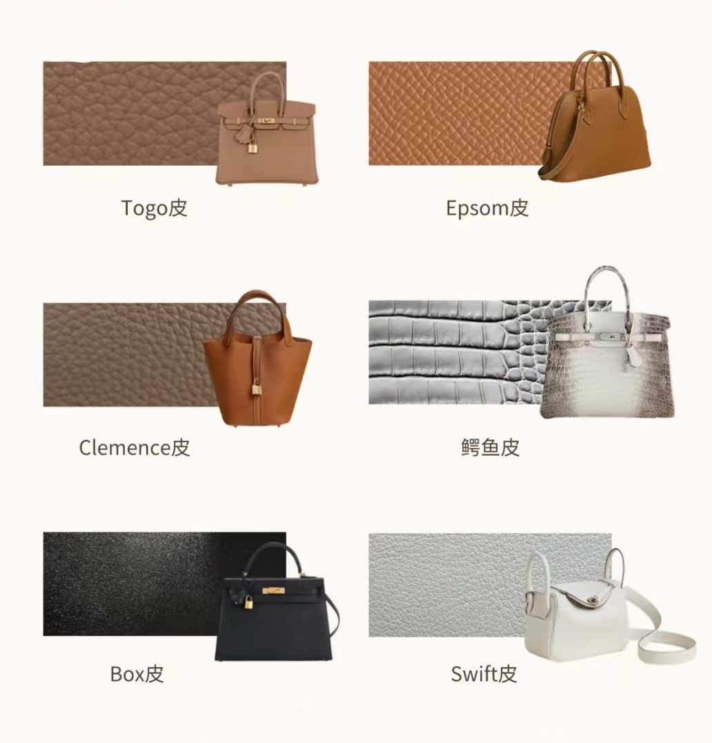 以下是爱马仕最常见和最具代表性的几种皮质及其特点: