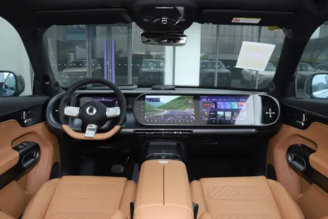 内饰方面,smart精灵#5 EHD超级电混(用车口碑)采用T字形的设计布局,内饰采用了两种配色方案,分别为浅蜜棕和曜石黑,车厢内采用了大量的皮质包覆以及镀铬装饰条,使其豪华氛围感营造得较为出色,中控台上配备了由两块13英寸的液晶屏组成的一体式大屏幕,具有较强的视觉冲击力,分辨率高达2.5K,显示画面清晰细腻,内置了AMD V2000车载智能芯片,以确保车机屏幕的操作流畅度和响应速度,支持手机App远程控制、高德地图导航、蓝牙/车载电话、CarPlay、Carlink、HUAWEI HiCar、车联网、OTA升级、面部识别、语音识别控制系统、Wi-Fi热点以及应用商店拓展等功能,能够给日常驾驶带来一定的便利性。三幅式的多功能平底方向盘造型时尚运动,支持上下前后四向调节,并配备了加热功能,10.3英寸的全液晶仪表盘可查看行车信息十分丰富,换挡形式采用的是电子式怀挡,并在前排中央扶手处配备了手机无线充电功能和2个USB/Type-C的多媒体接口,能够满足多个电子设备的充电需求。