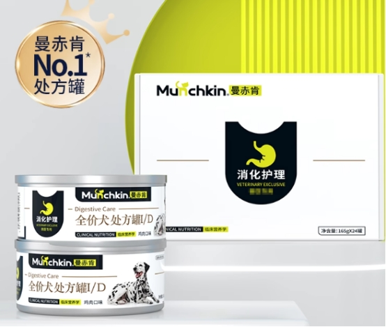 曼赤肯是主营处方罐、功能罐、主食罐等产品的品牌,以“天然、健康”为研发理念,为宠物提供精益求精、健康、放心的高品质食品。曼赤肯针对狗狗推出的罐头主要是处方罐,有ID肠胃罐、ID流质罐、KD肾脏罐等等。这款是肠胃罐,专注消化护理和肠胃食疗,适合狗狗肠胃道疾病的治疗和恢复,要在医生的指导下食用哦。主要原料有冻鸡肉、鲜猪肝、蛋黄粉等,比较低脂,同时特别用益生元、赖氨酸、小分子蛋白配方等帮助助力狗狗消化吸收,软稠慕斯质地方便入口,喂养方式灵活。