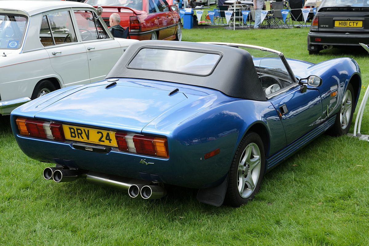 在设计风格上,保罗·莱瑟姆·杰克逊融合了多种经典跑车的元素。车身线条中既有捷豹E-Type的优雅,也有马科斯的力量感,还融入了阿斯顿·马丁的贵族气质,最终形成了独特而具有典型英国风格的跑车造型。整车尺寸方面,轴距为2362毫米,长度4140毫米,前轮距1352毫米,后轮距1270毫米,离地间隙114毫米。挡风玻璃来自MG B车型,推荐使用6J×13或6J×14的轮圈,配185/70 HR 13或185/60 HR 14规格的轮胎。
