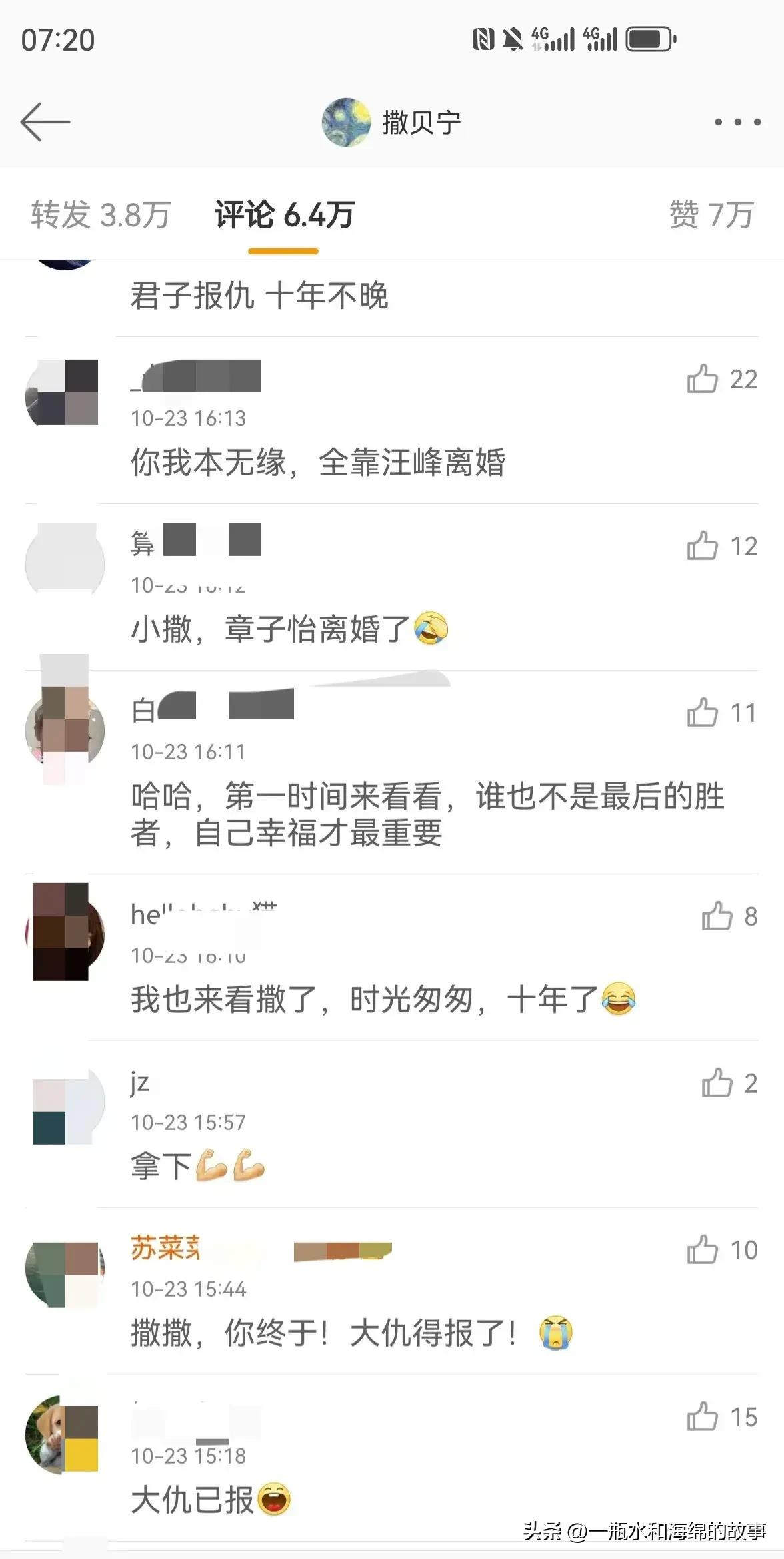 这其中,既有直呼“爽快”的,认为撒贝宁终于报了仇;也有感慨两人曾经感情的,惋惜他们的分手。