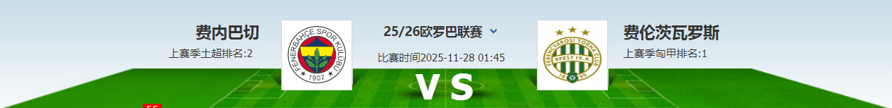 本场比赛是欧联杯第5轮的一场较量,由主场的费内巴切迎战费伦茨。费内巴切目前取得了2胜1平1负的成绩,积7分排在积分榜第15位;费伦茨目前取得了3胜1平1积10分排在积分榜第3位。