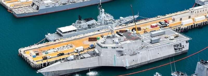 (在濒海战斗舰上测试MK70“导弹集装箱”)