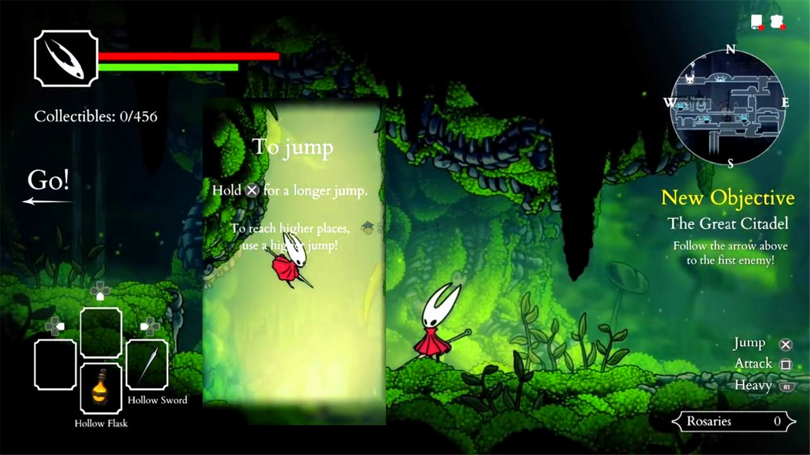 首先是育碧的版本。比起《空洞骑士:丝之歌》那干净的界面,土豆厂的界面那是出了名的“脏乱”,里面塞满了各种UI图标,任务目标、方向提示、按键提示、小地图等等,甚至每走几步,屏幕上就会弹出新手教学小影片,创作者在吐槽什么,大家一目了然,然后会心一笑、有意思的是:博士留意到一开始游戏主界面上左上角有两个异色大黄蜂造型,卖卖皮肤那是基本操作。