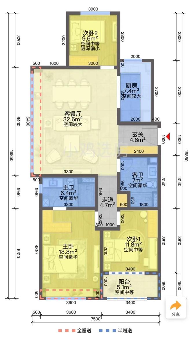 你会明显感觉到,同样一百二十平,横厅就是比竖厅更好用。