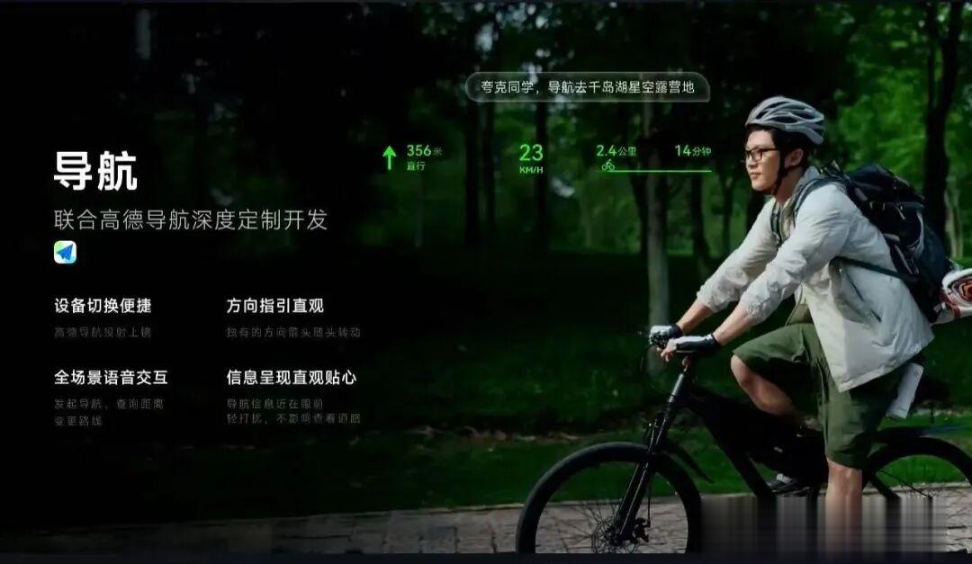 例如,夸克联合高德导航深度定制开发,让路径提示和方向箭头能直接叠在眼镜视野里,跟着你实时转向,语音指令也能一路响应,走路、骑车不用反复看手机: