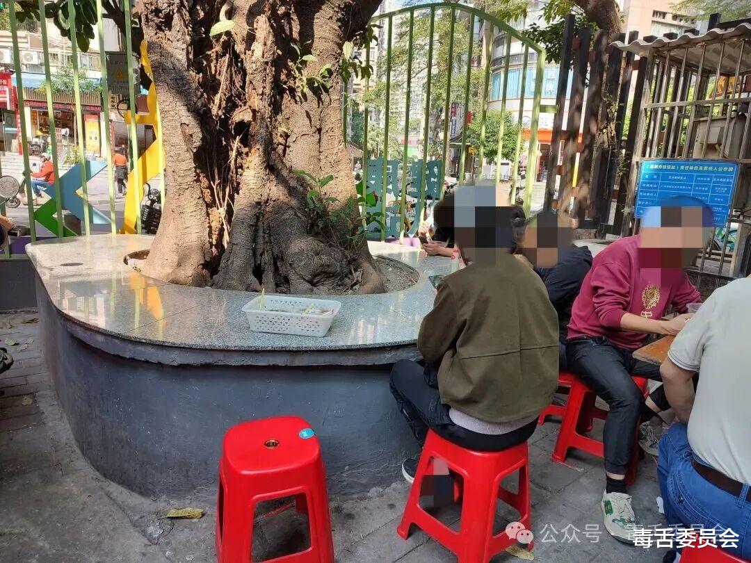 不得不说,这榕树头“大厅”装修真不错!那纯大自然的进餐环境,那种幕天席地的豪迈······那大理石的“桌面”既结实,又美观,还围绕着大榕树,采用了时尚的环形设计。使用这么一棵大榕树作为桌面装饰,那真是设计鬼才才能想出来啊?而树上还偶尔有些小鸟在吱吱叫······当然,希望它们不会从屁股挤点东西下来了······万一掉进碗里,那屎坑粉就太应景了?还有那热情如火的红色省凳,那马路上偶尔呼呼而过的汽车声,声声入耳。更难得的是,似乎总能隐隐约约闻到一股屎味······不是已经把公厕拆了吗?难道那屎味还要遗臭万年?还是我心理作用?下面说说点的两道菜吧。