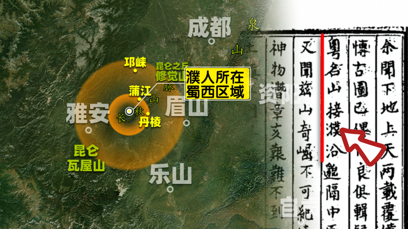 那么,为何说西极昆仑就在蜀地呢?我们还有更多证据。明代董难在《琼英洞歌》中写道:“恒闻西极昆崙黑水边,西粤名山接濮沿”。意即西极昆仑就在岷江(黑水)之畔,并且与濮人所居之地相接。我们知道,“濮人”主要指邛崃、雅安、蒲江等蜀西地区的先民,而“濮城”据翔子史前推理师先前推论,正是尧舜之都所在的蒲江区域。