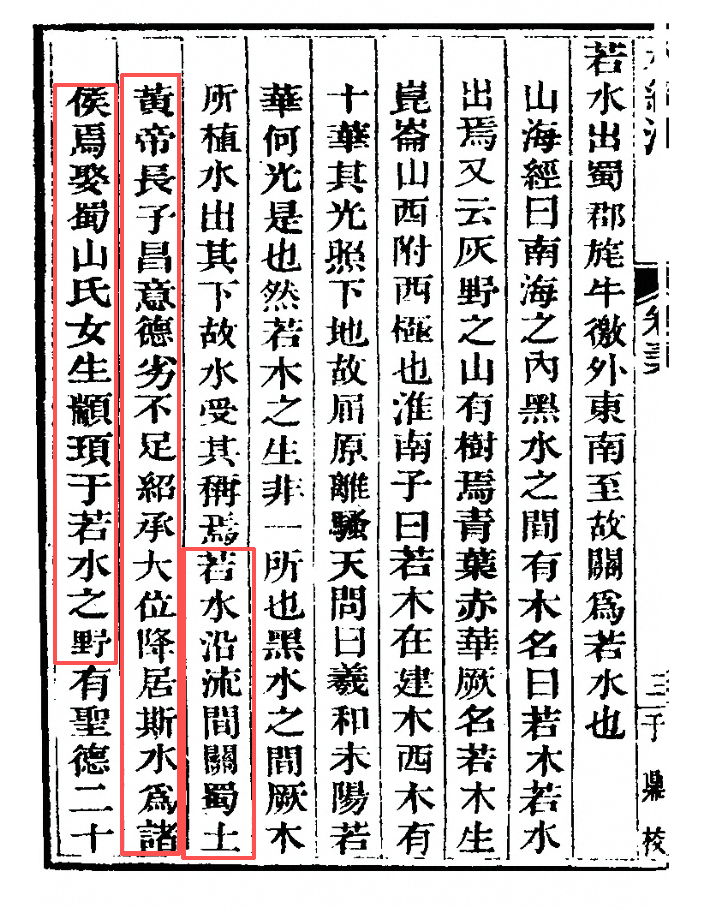 《淮南子》对此段亦有注解:“若水沿流,间关蜀土,黄帝长子昌意,德劣不足绍承大位,降居斯水为诸侯,娶蜀山氏女,生颛顼于其野”。这段话清晰地表明:若水流域就在蜀地。黄帝长子昌意因德行不足以继承大位,被分封到若水,在此娶蜀山氏之女,生下了颛顼大帝。这也正是后世认为五帝之一的颛顼大帝故里在蜀地青衣江流域的由来。