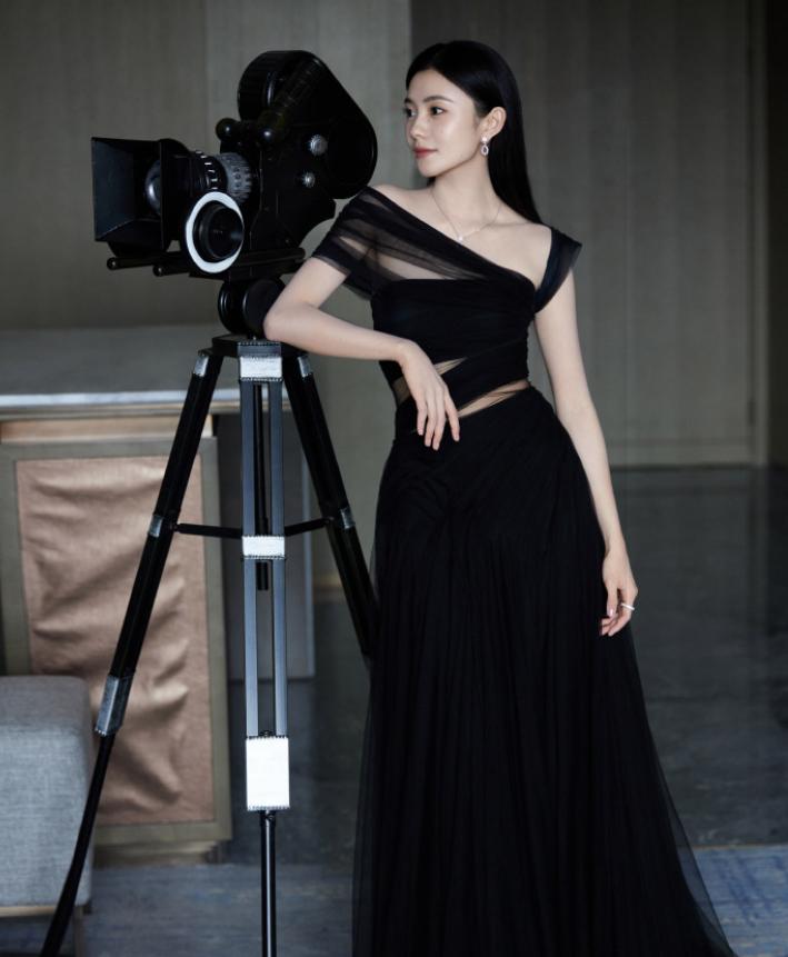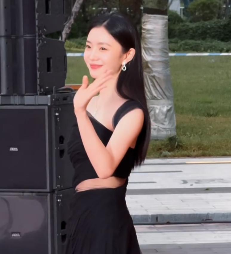 而在这身黑色吊带礼裙的衬托下,原本外在条件就非常出众的她,尽显高级清冷的气质,为她增添了别致的魅力。
