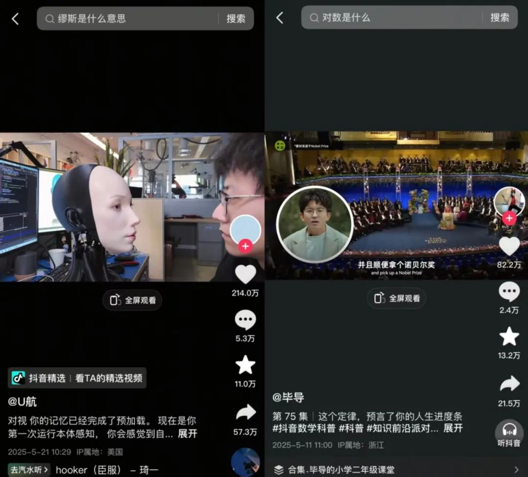 而这类账号之所以竞争力强,是因为触发了“强需求+弱供给”的组合:有受众愿意看,但想到去做的人很少,能做出风格、做出水平的人更少。比如@许二木 的“海龟汤”,@U航 在视频平台分享自主发明的AI机器人,@毕导 解读日常琐事里的科学冷知识等,本质上需要创作者具备较高的认知门槛或表达门槛,使得同类账号难以批量复制、轻易分流。