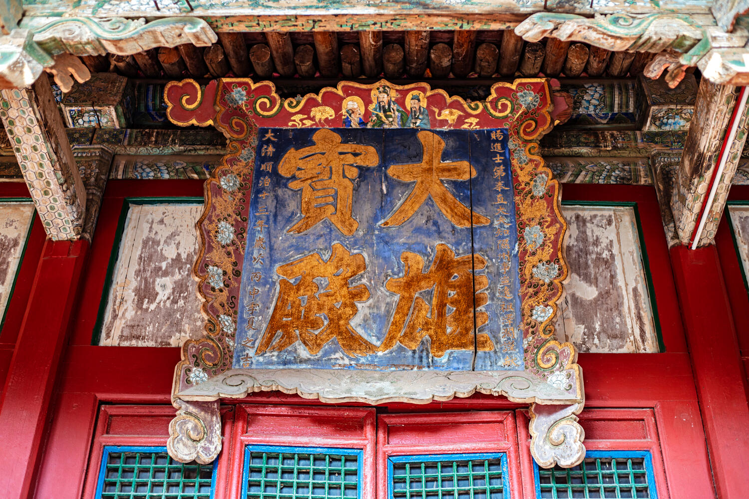 上院的大雄宝殿比别处的矮,屋檐却出得远,像老鹰张开的翅膀。殿门两旁的木柱上缠着红布,是香客拴的,最老的那块红布褪成了粉白色,边角被虫蛀了几个洞,能塞进手指。老张说这柱子是荆木做的,从吕梁山里运的,树龄比寺还大,现在用指甲划一下,还能渗出黏糊糊的汁,像树在出汗。