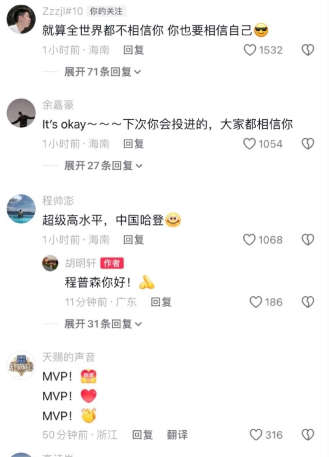程帅澎:“超级高水平,中国哈登”,胡明轩:“程普森你好”