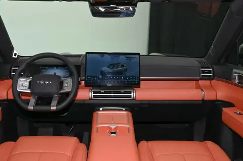 不仅在动力和续航等方面表现出色,方程豹钛7在外观设计上也非常有个性。方程豹钛7采用了典型的方盒子设计,整体外观极具越野风格。车辆前脸配备了封闭式格栅和方形LED大灯,具有鲜明的辨识度,让人一眼就能认出其越野车型。整个车辆的侧面看起来相当稳重。4999mm的车身长度配合2920mm的轴距,不仅为车内提供了充足的空间,也让整车显得更加稳重。方盒子的设计让车辆侧面更具美感,再加上大尺寸的运动轮毂和车顶行李架,进一步增强了车辆的越野性能和气息。尾部设计同样十分硬朗,延续了双层尾灯设计,并配备外挂式储物箱。采用越野车型常见的侧开门设计,整体兼顾了实用性和个性,能够满足许多年轻消费者的实际需求,也让它在外观上赢得了更多消费者的青睐。整体造型让车辆显得更加硬朗和时尚。