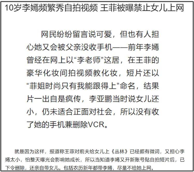 二、父母干预缺位?对比王菲禁女上网的保护主义