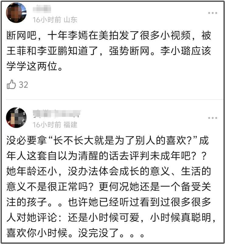 对比王菲对女儿李嫣的保护更显差距:当 10 岁李嫣在社交平台发布视频时,王菲立刻要求删除账号,甚至刻意减少她的公众曝光,用 "隔绝网络" 的方式为女儿筑起保护墙。这种 "强势干预" 虽引发 "限制自由" 争议,却让李嫣在相对单纯的环境中成长。而甜馨不仅要承受父母离婚的家庭变动,还要持续暴露在 "李小璐丑闻" 的舆论投射中 —— 有网友统计,过去一年甜馨相关新闻下,提及 "妈妈做错事" 的评论占比达 37%,这种持续性伤害远超普通青春期烦恼。