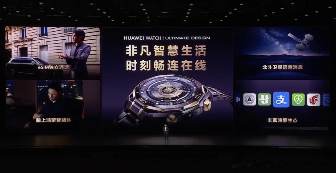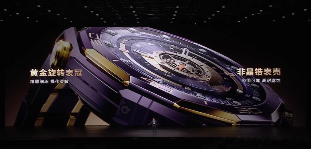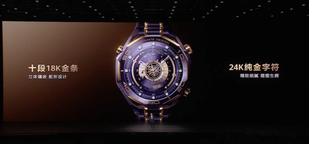 HUAWEI WATCH ULTIMATE DESIGN紫金款高端智能手表以巅峰之作树立新标杆本次发布会还带来了新一代HUAWEI WATCH ULTIMATE DESIGN 非凡大师紫金款,它将智能手表的尖端科技与传统经典腕表美学设计融为一体。新品机身不仅以手工镶嵌10段18K黄金,还有业界首创复合稀土紫色陶瓷表圈,紫金相彰诠释高贵非凡格调。其强悍内核更是集成eSIM先锋通信、北斗卫星语音消息、150米深潜能力与海豚声呐通信技术等尖端技术,以及 X-TAP智感窗健康监测、星闪™连接智慧控车等丰富功能,为高端人士打造出一款以探索精神致敬非凡人生的超高端智能腕表。