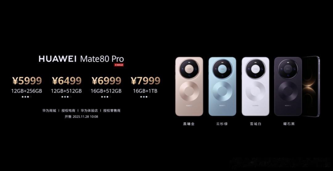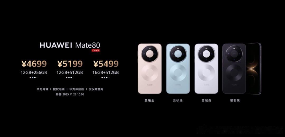 HUAWEI Mate 80系列现火热预售中,将于2025年11月28日10:08 正式开售,售价4699元起,购机更可享多重福利!限时可领至高1000元鸿蒙日日新签到红包、价值1200元鸿蒙有礼权益礼包、限量精美礼品等你来领!随新机购买HUAWEI Care+可限时获赠保值焕新权益。选购HUAWEI Mate 80更可享至高300元以旧换新额外补贴、至高12期分期免息等专属购机权益,欢迎前往华为门店了解及选购!