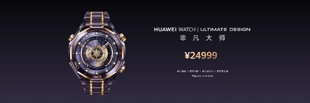 HUAWEI WATCH ULTIMATE DESIGN非凡大师紫金款售价24999元,现已开启预售,2025年11月28日9:08正式开售,可前往华为商城、授权电商、华为体验店、授权零售商进行购买。