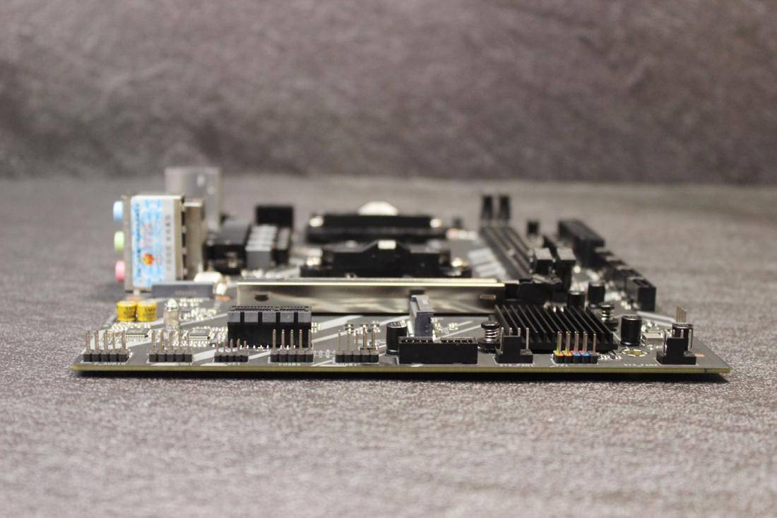 在外观配色方面,华南金牌采用了经典黑色PCB + 灰白色插槽,风格简约;在散热方面,CPU供电部分配备小型散热片,虽不豪华但这个平台绝对够用;在整体布局方面,这款主板虽然小巧但是接口布局合理,安装显卡后仍可轻松插拔SATA/USB线。