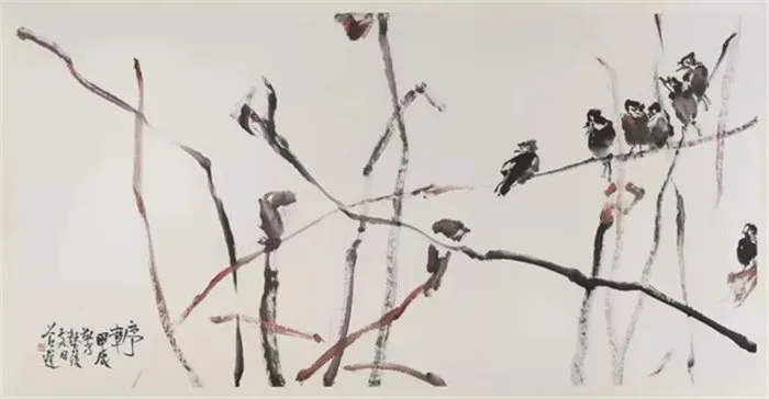 此次展览的大写意花鸟作品《太白寻梅》、《那些花儿》、《六月花》、《序章》、《玉兰》等作品正如嘉宾们所谈及,范存刚作品所表达的大写意精神“以书入画”、“气”取胜,其大写意花鸟作品用笔方硬、古拙,又不失灵动,线条多飞白、枯笔由巧而到拙,天真纯朴而磊落大方,笔笔相互生发,意于笔先。运笔用墨在轻重、虚实、刚柔、方圆、徐疾、顿挫等变化中求得画面的统一与和谐,形成独特的笔墨韵味。常常令观者惊讶于画家婉转微妙处笔意墨韵的妙手偶得。